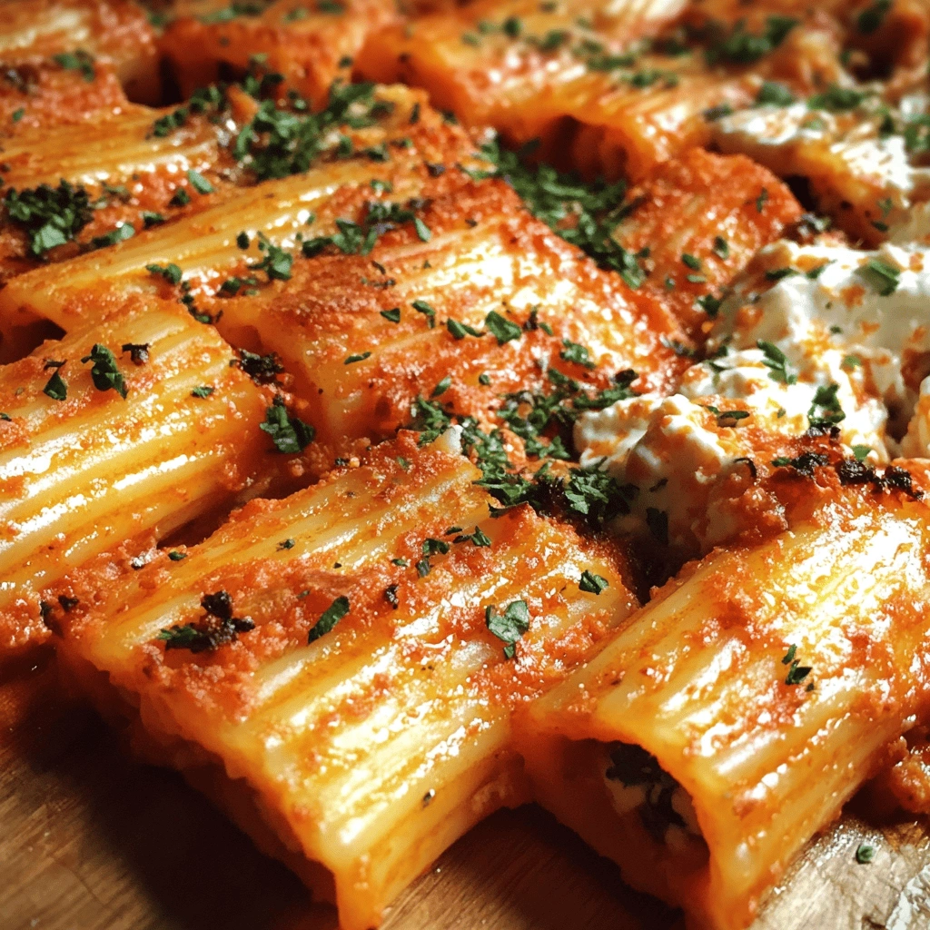 Don’t forget about texture! To achieve a delightful contrast, consider adding some crunch by using breadcrumbs on top of your Oven-baked Mostaccioli con Ricotta. Mix breadcrumbs with a bit of olive oil and sprinkle them over your assembled dish before baking. This creates a crunchy topping that complements the creamy layers beneath, making each bite enjoyable.