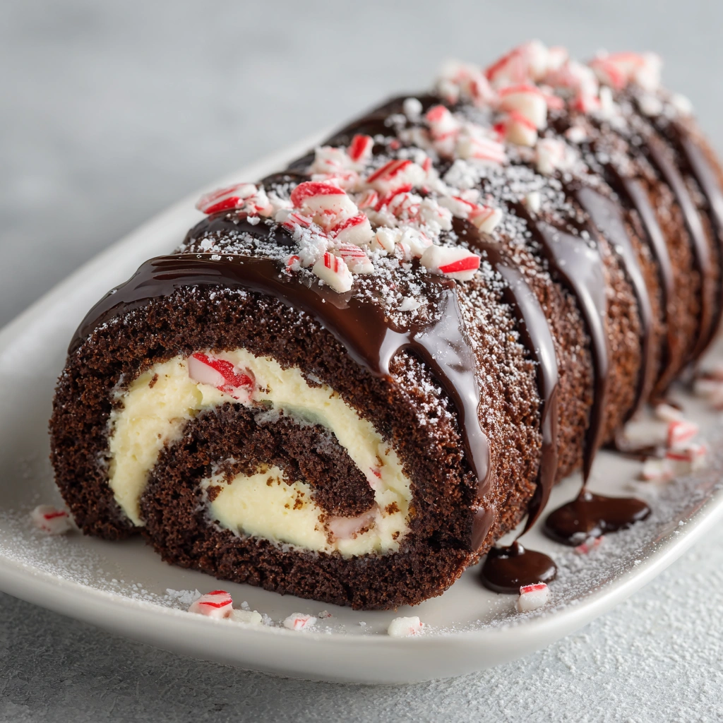 A festive, chocolatey sponge cake rolled around a creamy peppermint ganache, perfect for holiday celebrations or anytime you want a decadent, show-stopping dessert. Soft, fluffy, and rich with minty chocolate flavor, this Swiss roll is both elegant and fun to serve.