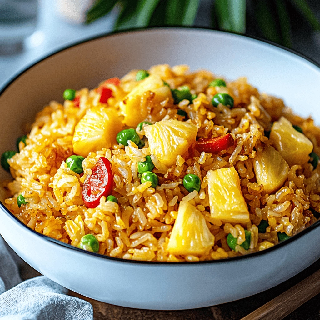 Pineapple Fried Rice is a delightful dish that combines the sweetness of pineapple with savory flavors. This vibrant meal captures the essence of tropical cuisine and can be prepared quickly, making it perfect for busy weeknights or special occasions. The combination of fresh vegetables, protein options, and aromatic spices makes this dish not only delicious but also versatile. Whether you’re craving a quick lunch or an impressive dinner party dish, Pineapple Fried Rice is sure to satisfy your taste buds.
