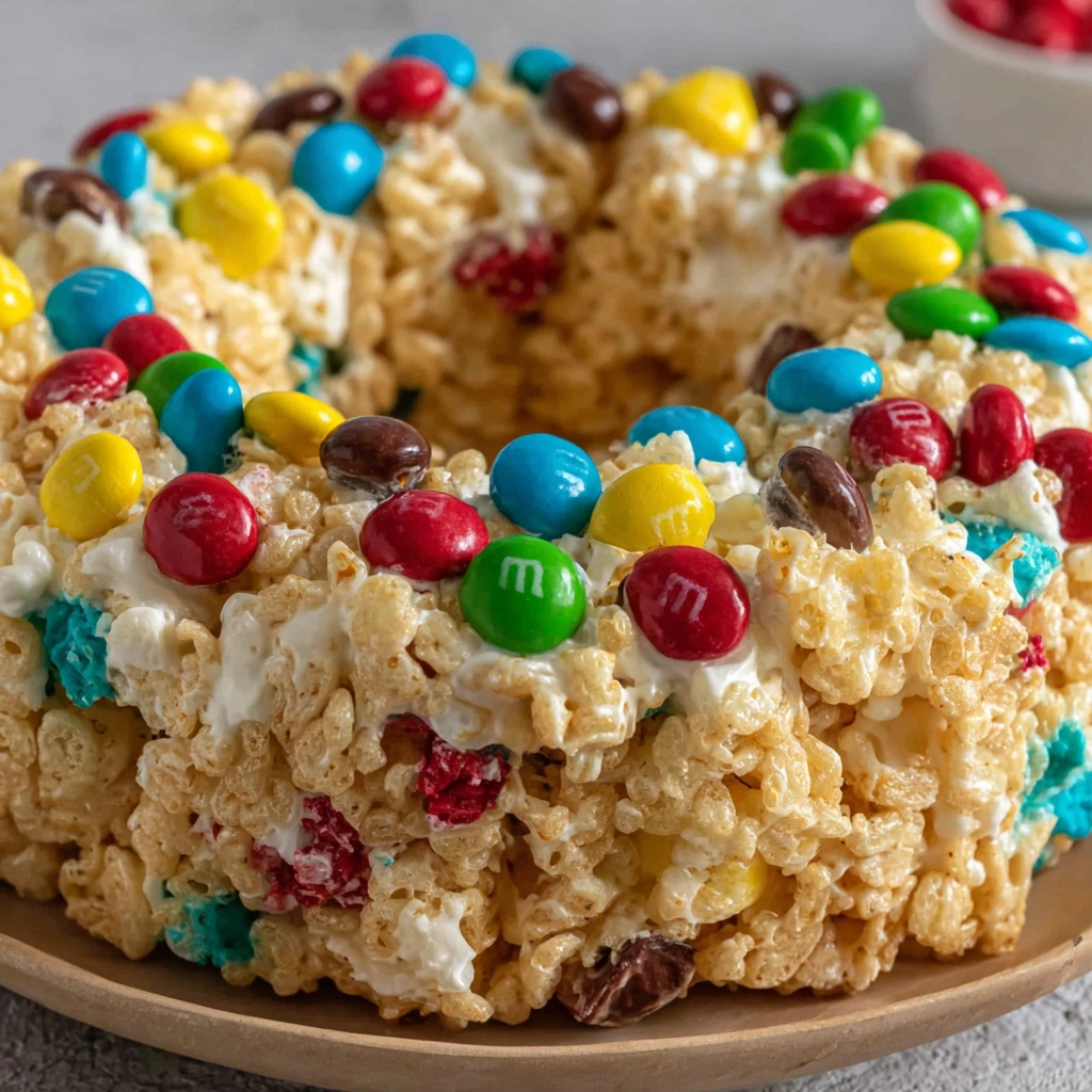 A fun, colorful, no-bake treat made with popcorn, marshmallows, and candy—sweet, chewy, crunchy, and perfect for parties, holidays, or anytime you want a dessert that looks impressive but takes almost no effort. Think of it as a playful mash-up between Rice Krispie treats and a festive candy-studded cake!