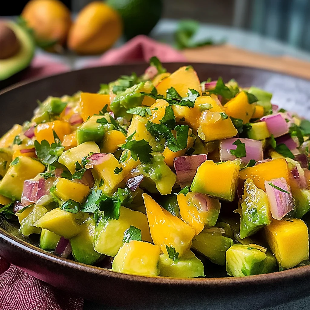 This Avocado Mango Salsa is best enjoyed immediately after preparation when flavors are vibrant. Serve it with tortilla chips or as a topping for grilled chicken or fish at gatherings or family dinners for maximum enjoyment.