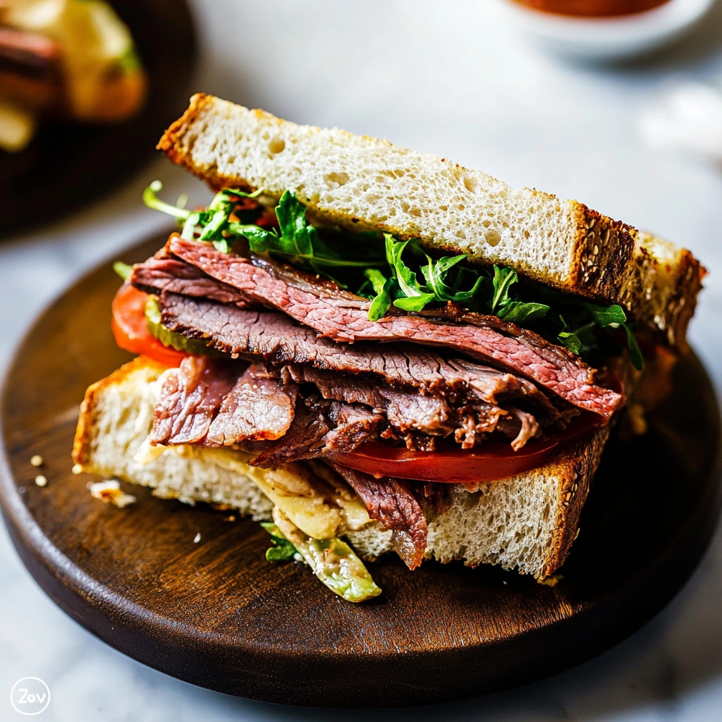 This simple yet flavorful roast beef sandwich recipe will surely become part of your regular rotation! Enjoy every bite as you savor its rich taste combined with fresh ingredients today!