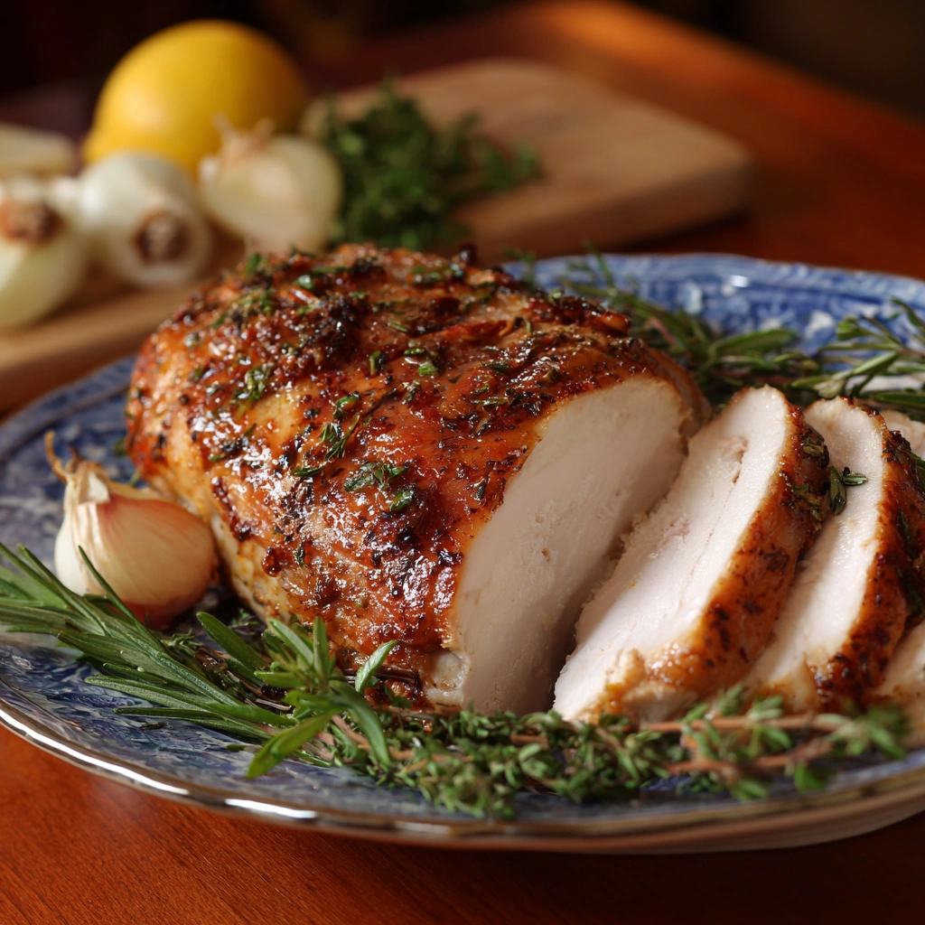 A juicy, flavorful roasted turkey breast with golden, crispy skin and tender meat—perfect for holiday meals or simple weeknight dinners when you want something comforting and impressive without cooking a whole turkey.