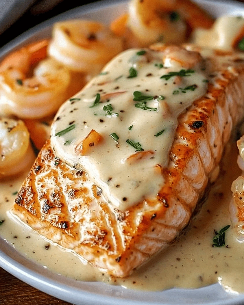 This Salmon and Shrimp with Creamy Garlic Sauce is a luxurious, flavorful dish that’s easy to prepare and perfect for any special occasion. The creamy garlic sauce complements the richness of the salmon and shrimp, making every bite a delight!