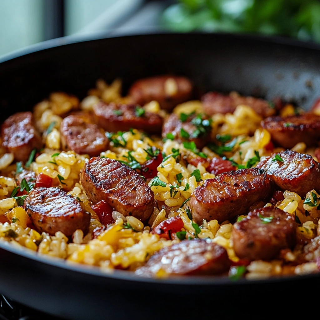 Serve your sausage and rice skillet hot straight from the pan onto plates or bowls for an appealing presentation! Pair it with fresh herbs or a sprinkle of cheese if desired for added flavor.