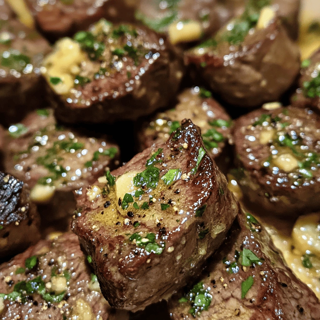 Store any leftover Garlic Butter Steak Bites in an airtight container in the refrigerator for up to three days. When reheating them, consider using a skillet over low heat to maintain moisture rather than microwaving them directly which could lead to dryness.