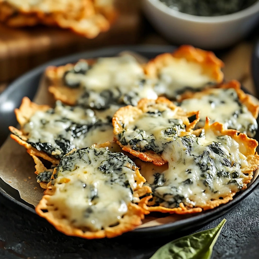 Serve these Spinach Dip Cheese Crisps warm as an appetizer or snack at gatherings. They pair wonderfully with dips like salsa or guacamole if you want to add extra flavor options for guests.