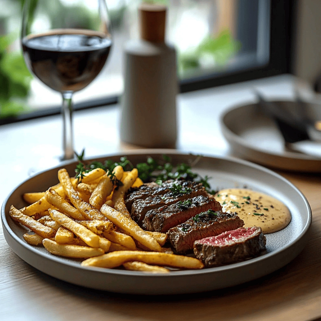 Pairing your steak frites with a delicious sauce can elevate this dish further. A classic béarnaise sauce or garlic herb butter adds rich flavors that complement both the steak and fries beautifully.