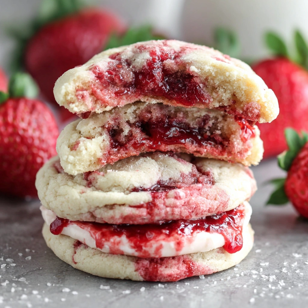 Soft, buttery cookies filled with a creamy cheesecake-and-strawberry center — a decadent treat that combines rich cream cheese, sweet strawberries, and tender cookie dough. Perfect for dessert boxes, parties, or cozy nights in.