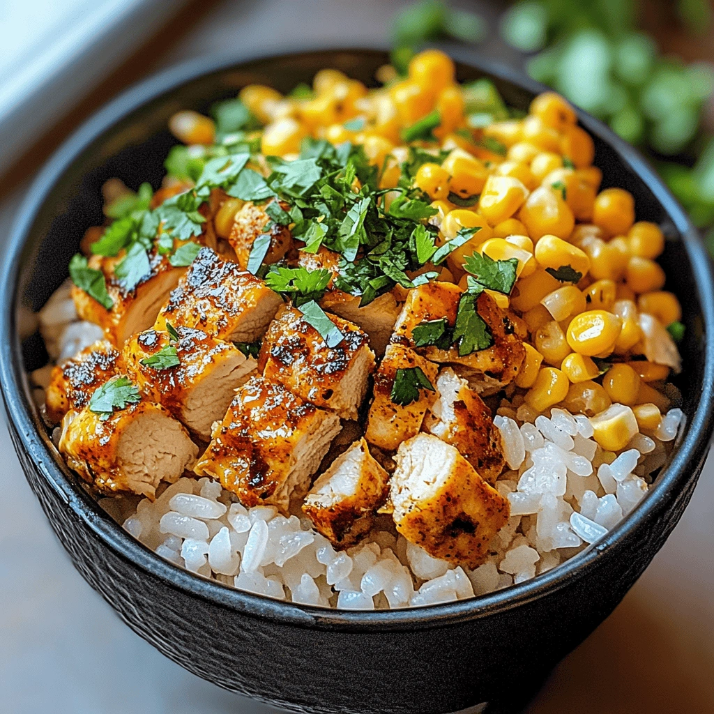 When preparing your Street Corn Chicken Rice Bowl, start by marinating the chicken for at least 30 minutes before cooking. A marinade consisting of lime juice, garlic, and spices infuses flavor into the meat, ensuring it remains juicy during grilling or pan-searing.
