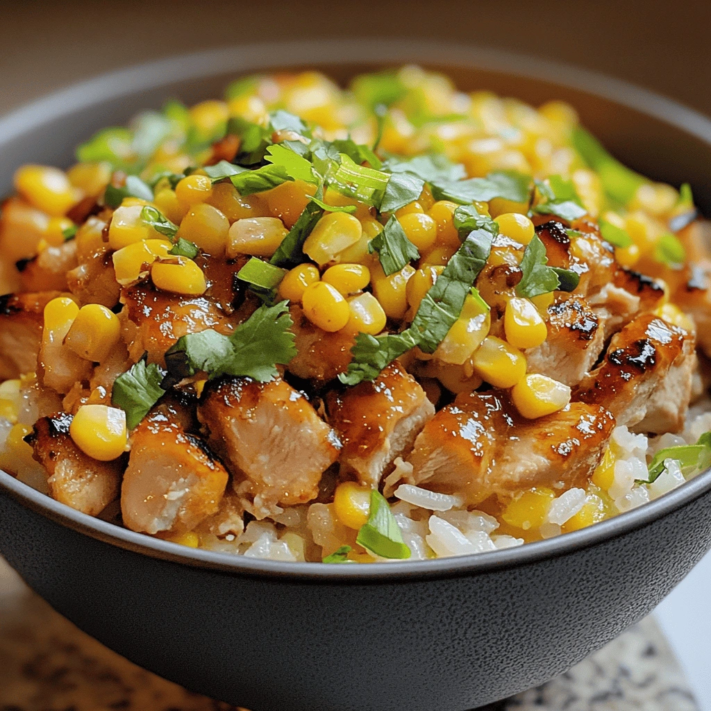 Complement your Street Corn Chicken Rice Bowl with sides like tortilla chips with salsa or guacamole for added crunch and flavor. A fresh salad made from mixed greens and avocado also pairs well, balancing out the richness of the bowl itself while adding freshness.