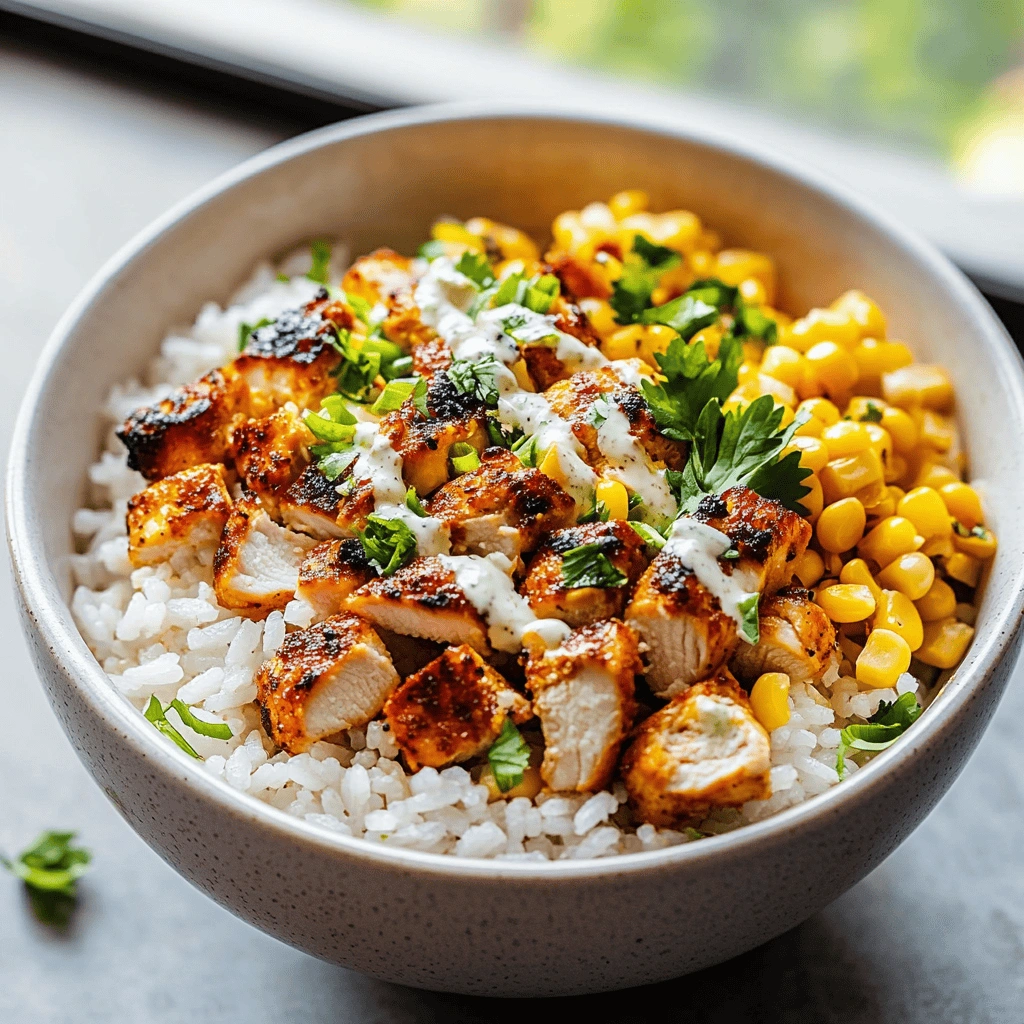 Step By step Recipe : Street Corn Chicken Rice Bowl