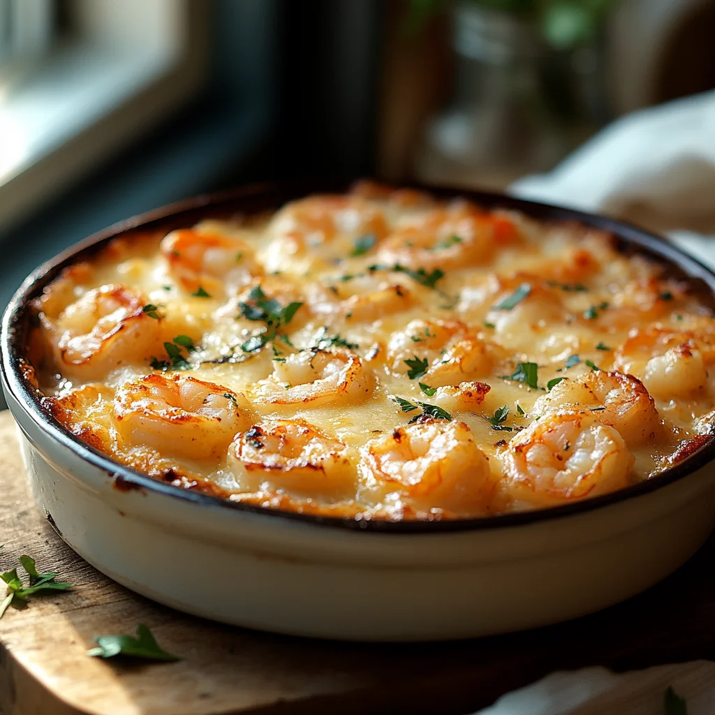 This Garlic Shrimp Gratin is a decadent dish featuring succulent shrimp baked in a creamy garlic sauce, topped with a golden breadcrumb crust. Perfect for impressing guests or enjoying a special family dinner!