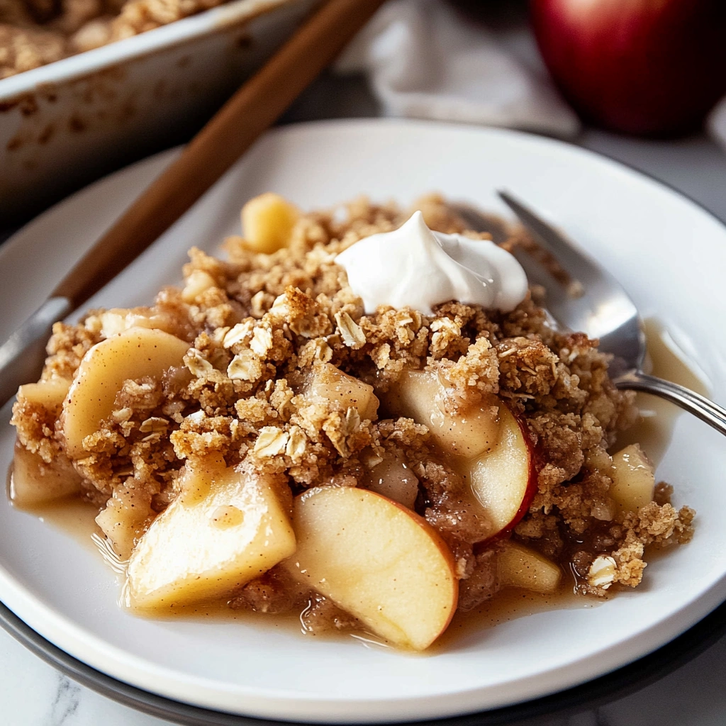 Finally, serve your apple crisp warm with a scoop of vanilla ice cream or a dollop of whipped cream atop it. Combining hot dessert with cold toppings creates an indulgent experience that elevates this classic dish even further, making it irresistible!