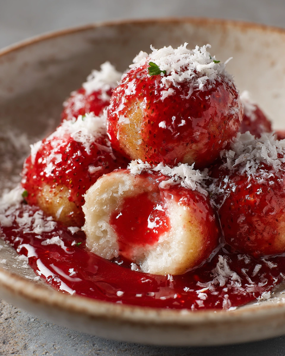 These Polish strawberry knedle are soft potato dumplings filled with juicy strawberries — a light, nostalgic dessert full of summer flavor.