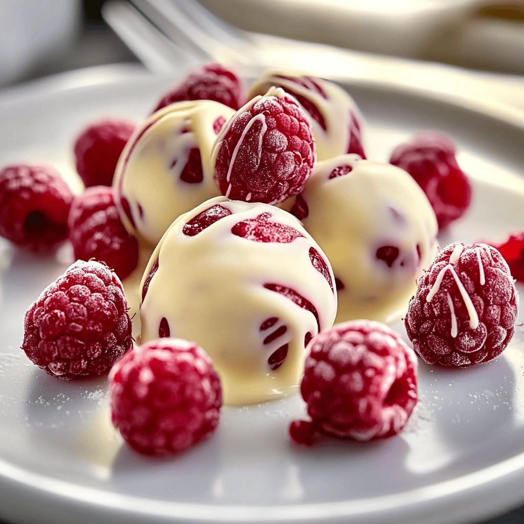 To achieve perfectly round White Chocolate Raspberry Cheesecake Balls, use a cookie scoop or melon baller for uniformity. This ensures that each ball is consistent in size, which not only enhances presentation but also guarantees even freezing and serving. After scooping, roll each ball between your palms to achieve a smooth surface; this creates a more appealing texture when served.